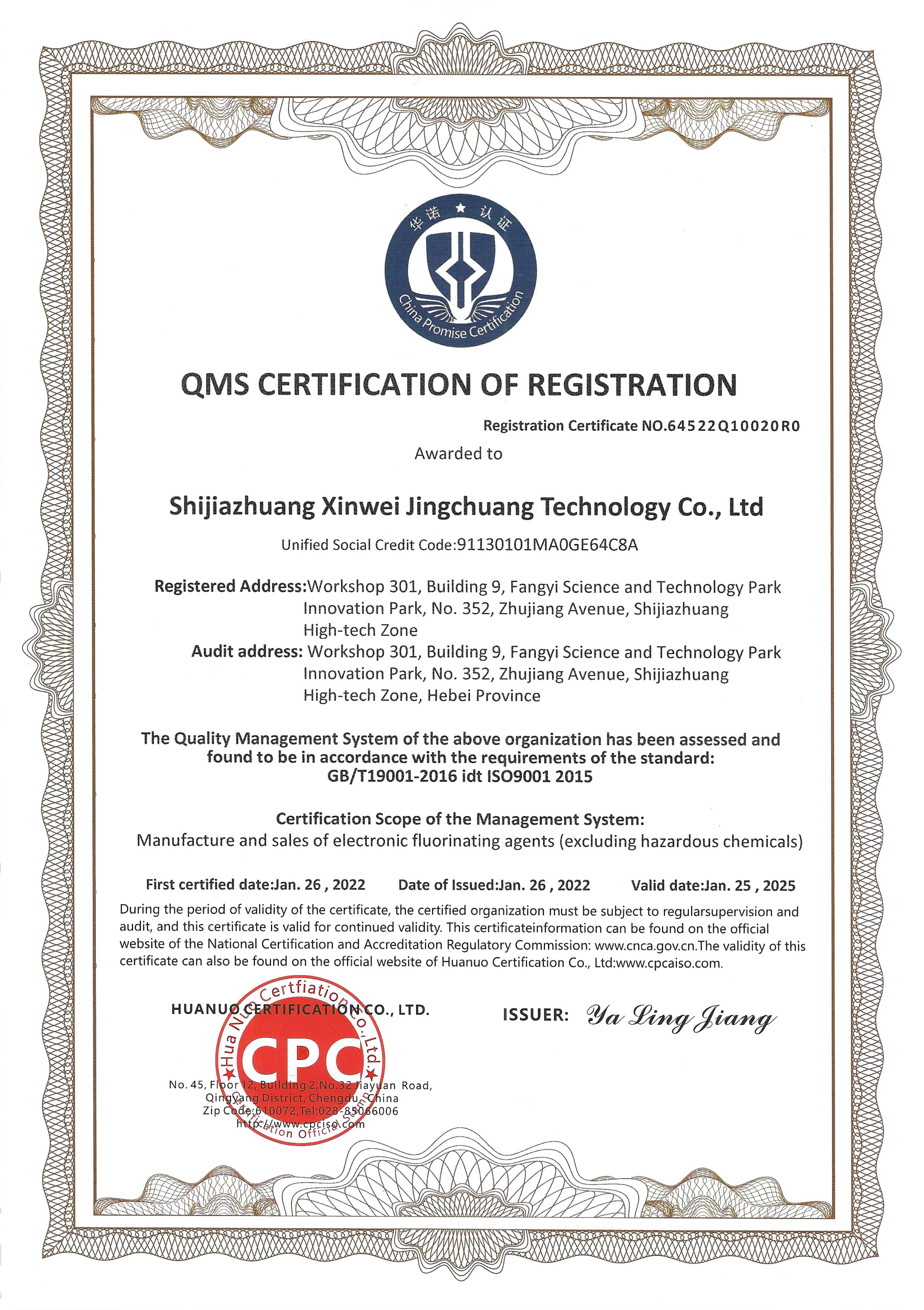 Beijing Xinwei Jingchuang Technology Co., Ltd. is a manufacture-base company on fluorine engineer fluids , espcially on coating products with Thinvec® brand.